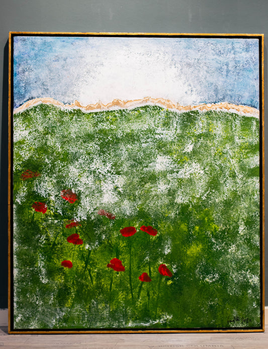 Blumenwiese, Jan Schröder (*1948), Mischtechnik auf Leinwand 2021.