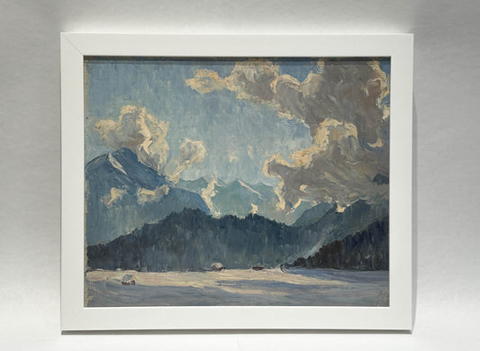 Alpine Schneelandschaft mit strahlend blauem Himmel, Atemberaubendes Orig.-Gemälde von Elfriede Jungk (1889-1955)