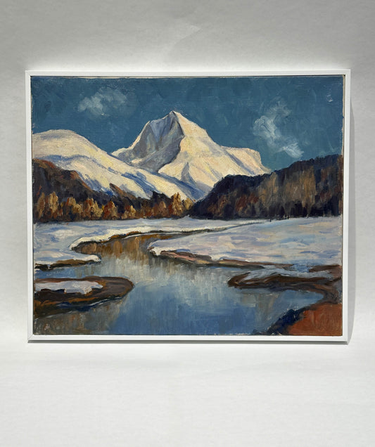 Alpine Flusslandschaft im Winter, Orig.-Gemälde von Elfriede Jungk (1889-1955) Klassische Moderne