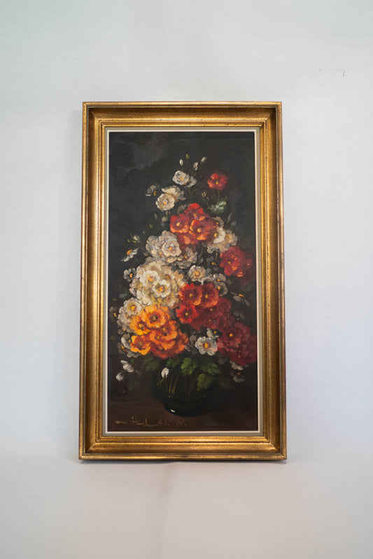 Französischer o. belgischer Künstler des 20. Jahrhunderts, Ölgemälde Blumenstillleben in dunkler Rauchglasvase