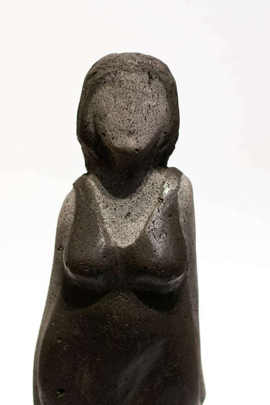 Frau im Kleid - Basaltskulptur von Francesco Caligiuri Plaidt Lavastein 2024