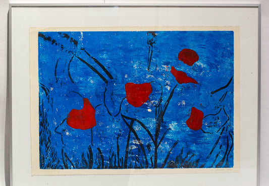 Jan Schröder (*1948). Farbholzschnitt „Mohnblumen“, 8. Ausführung 1995