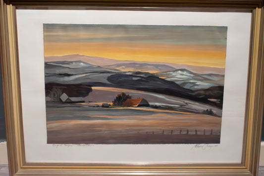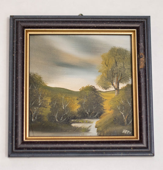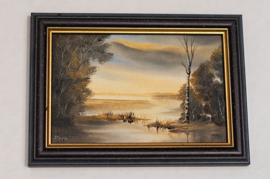 Landschaft im Morgengrauen / Sonnenaufgang - Kl. Gemälde v. Ilse Nern