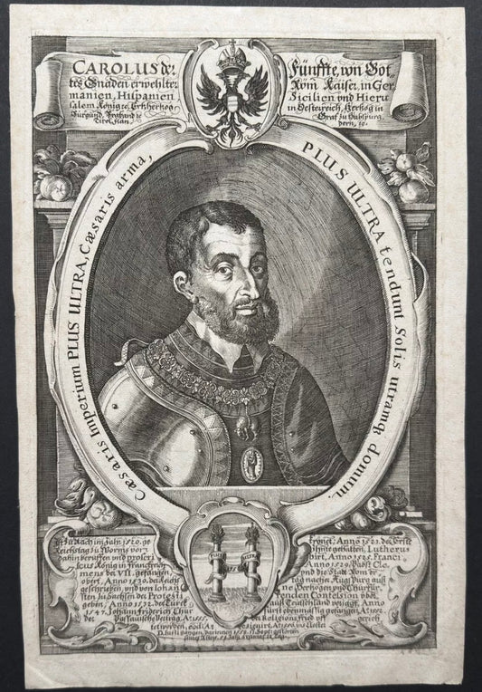 Kupferstich Kaiser Karl V. (1500-1558), um 1750 nach e. Portrait von Paul Rubens