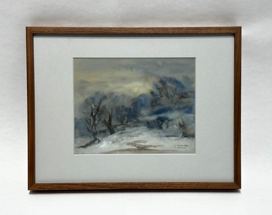 Nebelige Winterlandschaft im Taunus, Mystisches Aquarell von Wilhelm Raab (1907-1989)