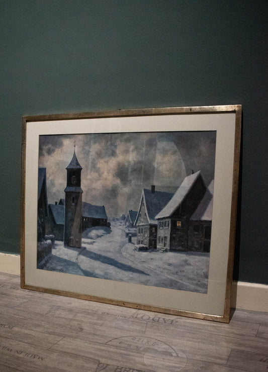 Karl Demetz (1909-1986) nach, Öldruck auf Papier, Winterlich verschneites Dorf