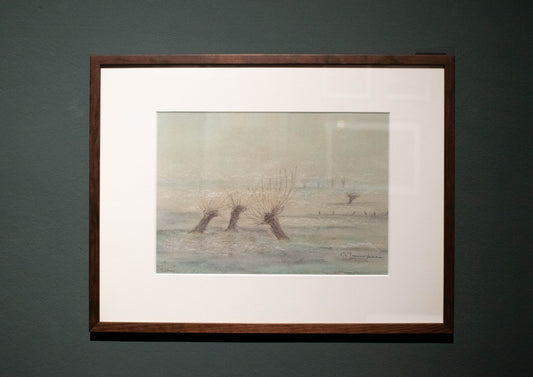 Kopfweiden in Winterlandschaft, Pastell auf grauem Zeichenpapier von Maria Theresia Rave-Faensen (1903-1987)