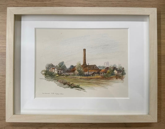 Orig. Zeichnung v. Wilhelm Raab (1907-1989) Ziegelei Köhler Frankfurt a.M. 1976