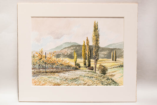 Orig.-Aquarell, Herbst in der Pfalz mit Weinreben und Hügellandschaft