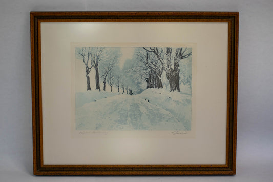 Orig.-Farbradierung von Friedrich Iwan (1889-1967). Verschneite Allee bei Landeshut / Winterlandschaft Niederschlesien