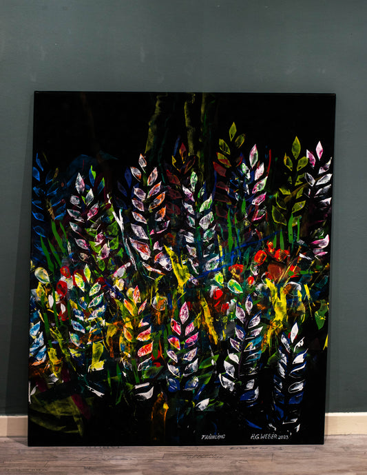 Orig.-Gemälde „Frühling“ 2023 von Hans Günter Weber (*1956), Acryl auf schwarzem Velours, 130 x 110 cm