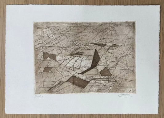 Seltene Orig.-Radierung v. Bildhauer u. Künstler Hubert Benatzky (1920-1988) Abstrakte Kunst X Landschaftsarchitektur X Geometrie