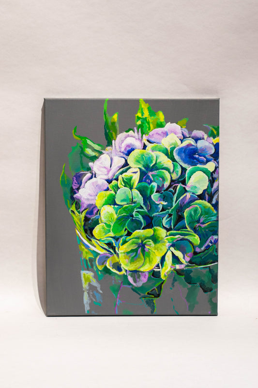 Hortensie, 2005, Originalgemälde des Münstermaifelder Malers Wolfgang Eberhardt (*1949), Acryl auf Leinwand