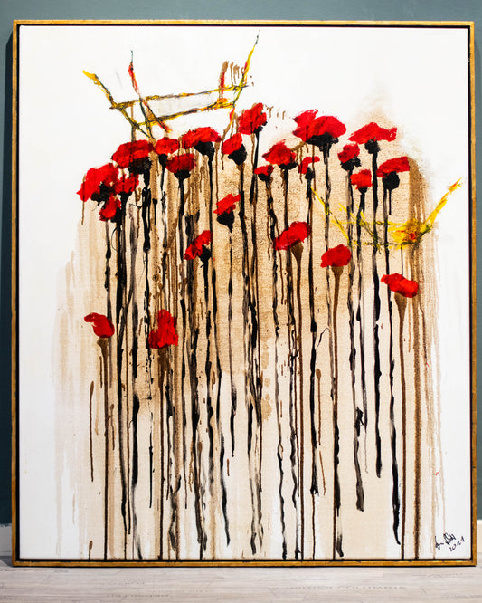 Mohnblumen, o.T., Jan Schröder (*1948), Mischtechnik auf Leinwand, 2021.