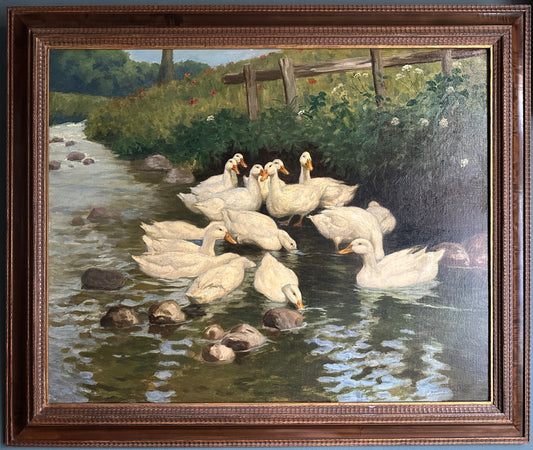 Orig.-Gemälde v. Ernö Nagy (1881 Budapest - 1951 München) Weiße Enten im Bach, um 1925