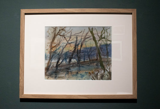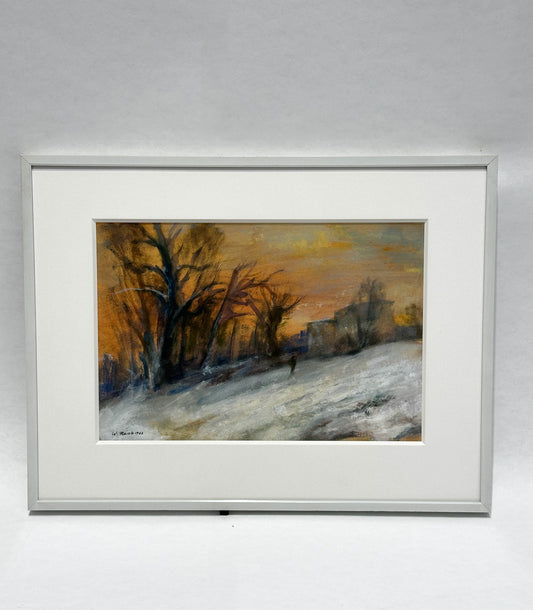 Winterlandschaft im Taunus 1984, Aquarell-Pastell-Mischtechnik auf Zeichenpapier von Wilhelm Raab (1907-1989)