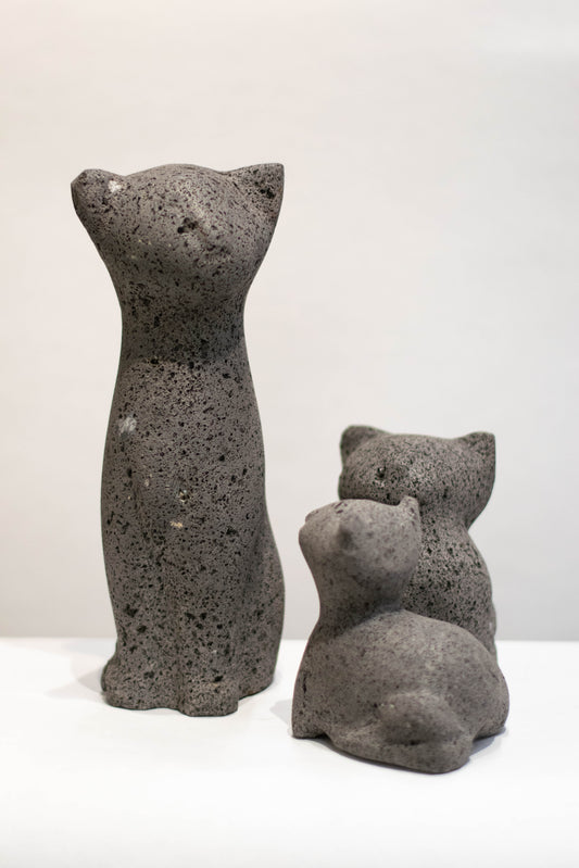 Katzenmutter mit zwei Kätzchen / Basaltskulpturen von Francesco Caligiuri Plaidt Lavastein