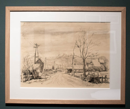 „Straße in Lenggries / Oberbayern“ 1947. Post-War Lavierte Tuschezeichnung des Frankfurter Kunstmalers Wilhelm Raab (1907-1989)