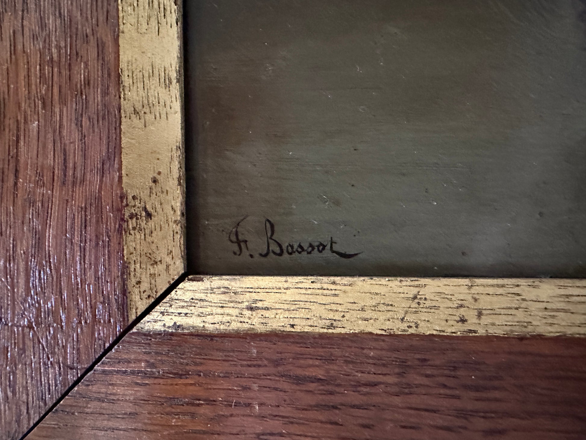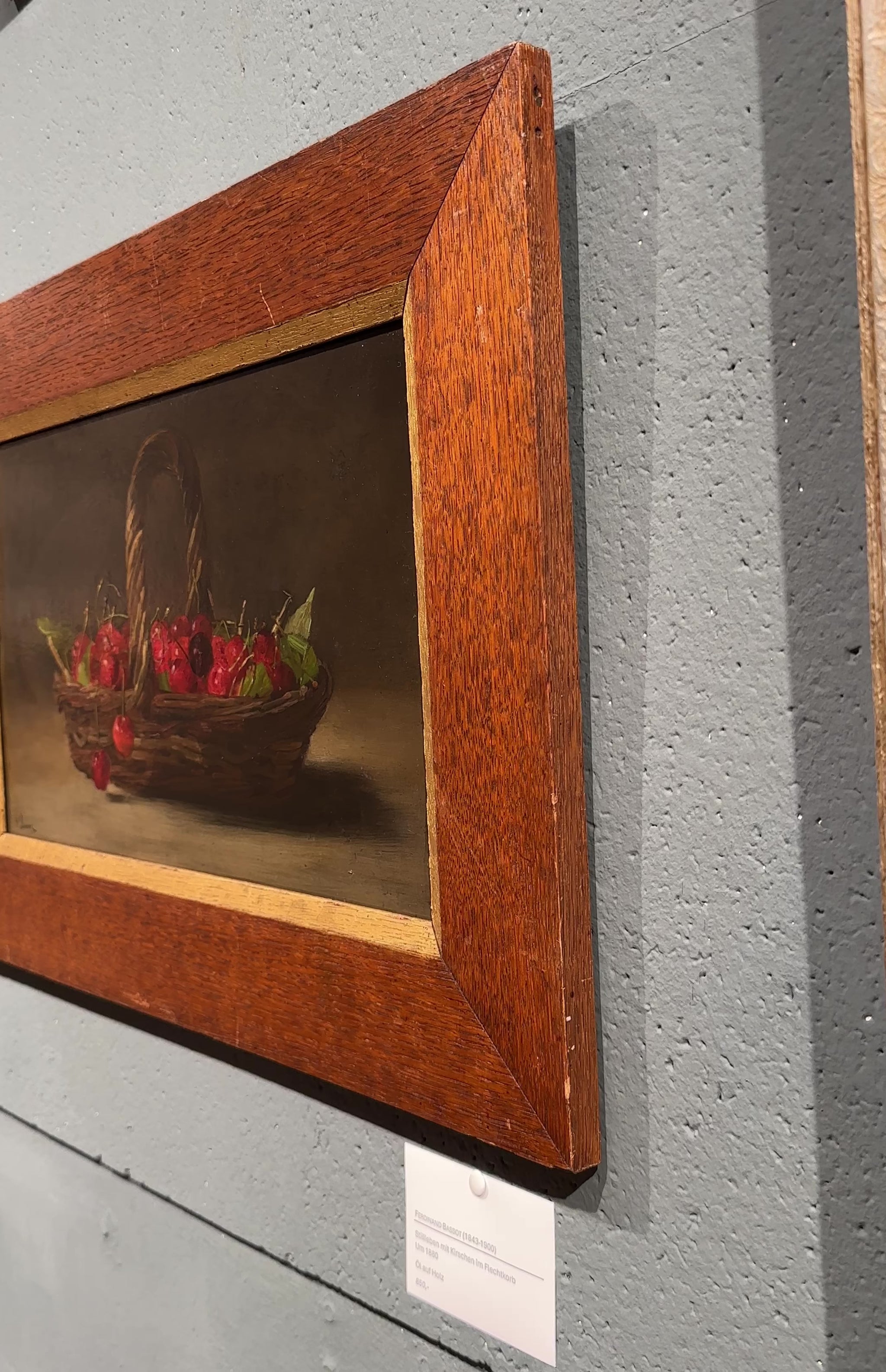 Ferdinand Bassot (1843-1900), Impressionist, hauptsächlich Porträtmaler aus Paris, zaubert um 1885, zur Zeit der Dritten Französischen Republik, diese wunderbaren Kirschen auf eine Holztafel im schlichten Echtholzrahmen (ca. 57 x 40 cm). Die Dreidimensionalität der Darstellung lässt sich kaum ins Bild setzen - Bassot platziert Licht-, Farb- und Schattenverläufe in diesem Gemälde meisterhaft. Das Besondere: je dunkler die Raumumgebung und je weniger künstliches Licht auf das Gemälde scheint, desto greifbarer scheinen diese saftigen Kirschen - ein wahres Meisterwerk aus der Stadt der Liebe.